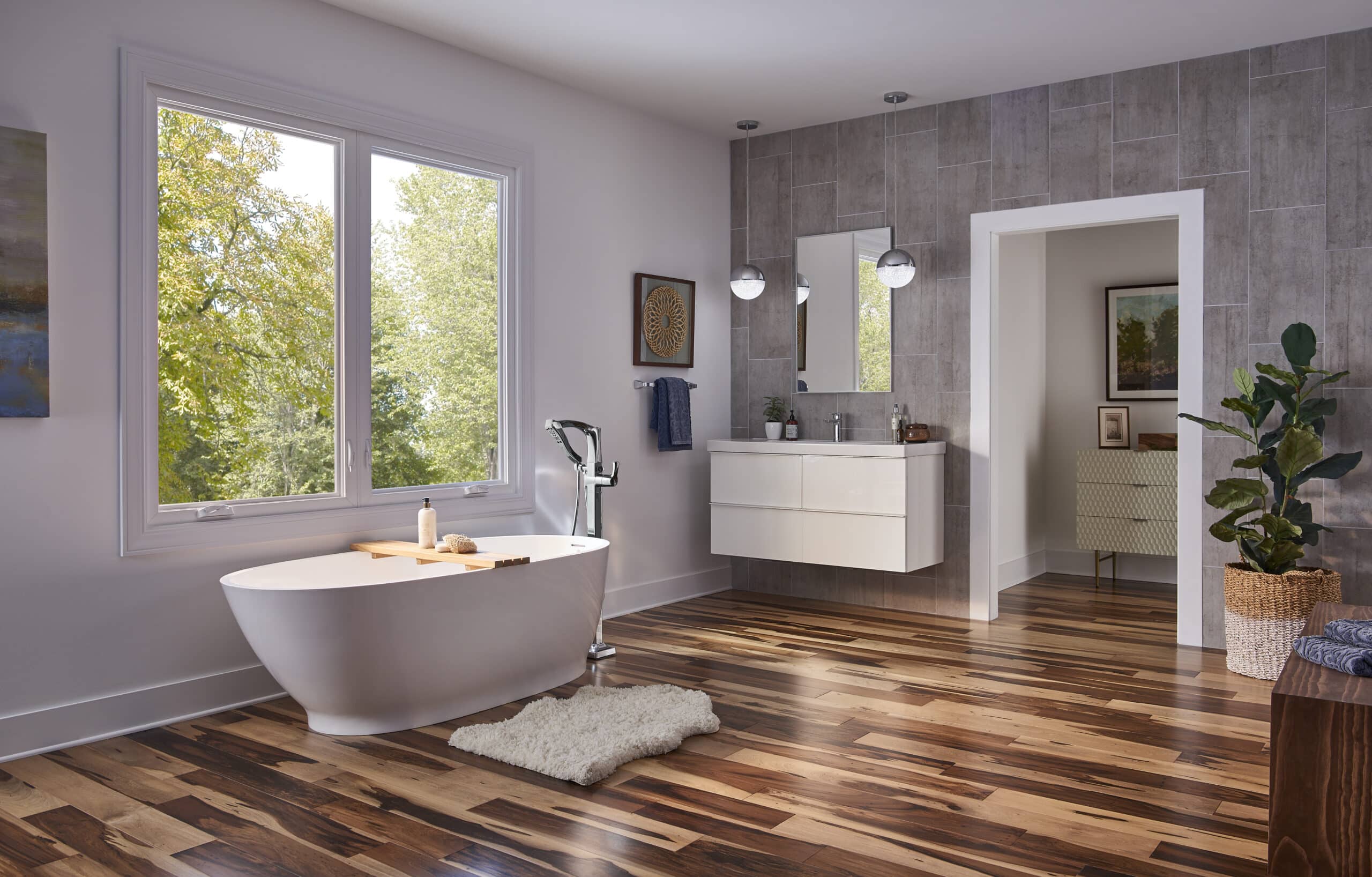 With their sleek frames and maximized glass space, casement windows add a modern look to any room. They’re often paired with awning windows to give you expanded vertical views.